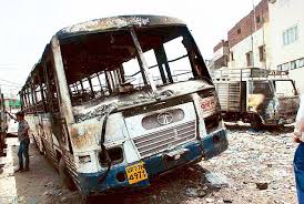 They also stoned buses and other passing vehicles and police fired in air to control the mob which fired at the police team, the sources said.